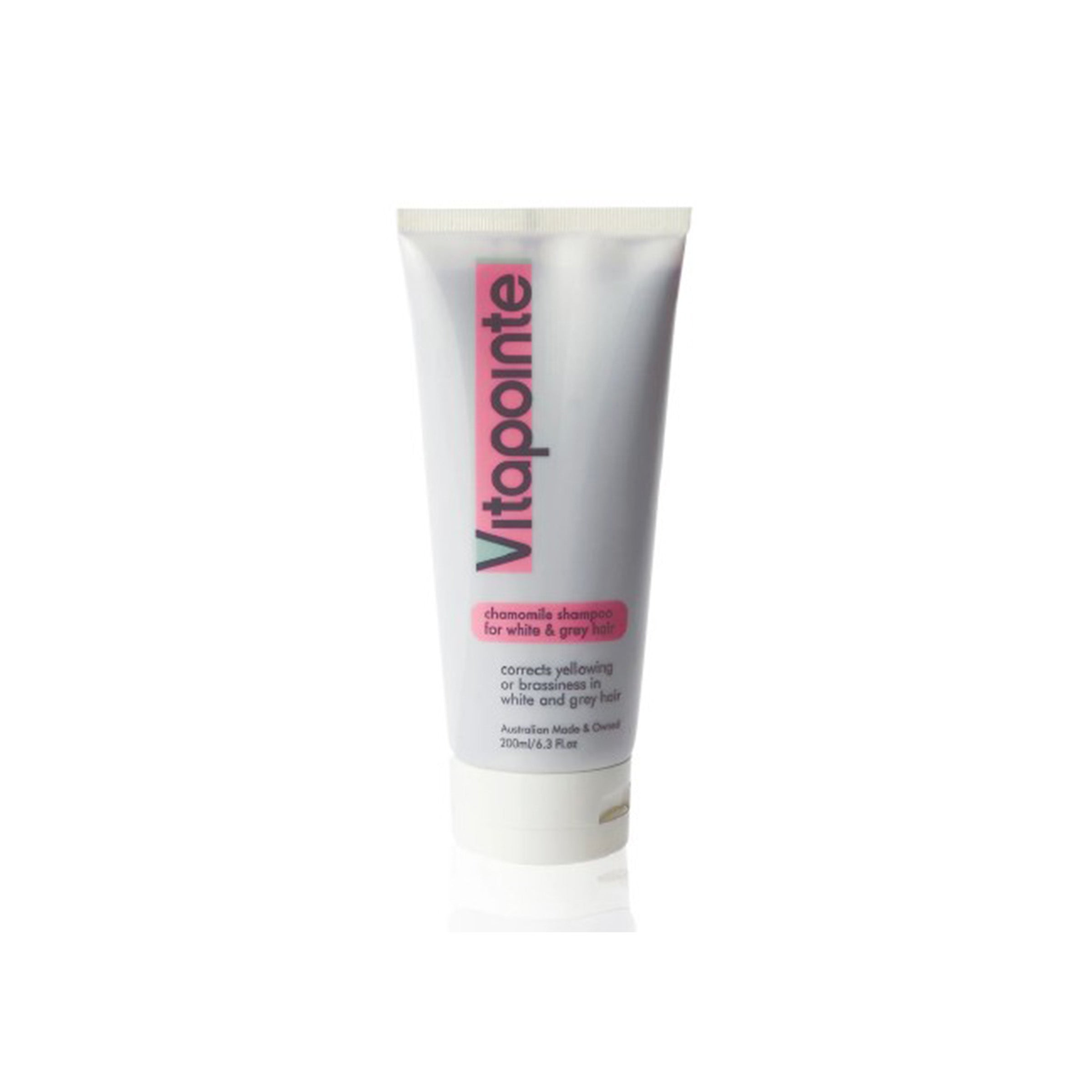 Vitapointe Chamomile Shampoo freshens faded blonde hair and corrects yellowing of white and grey hair.